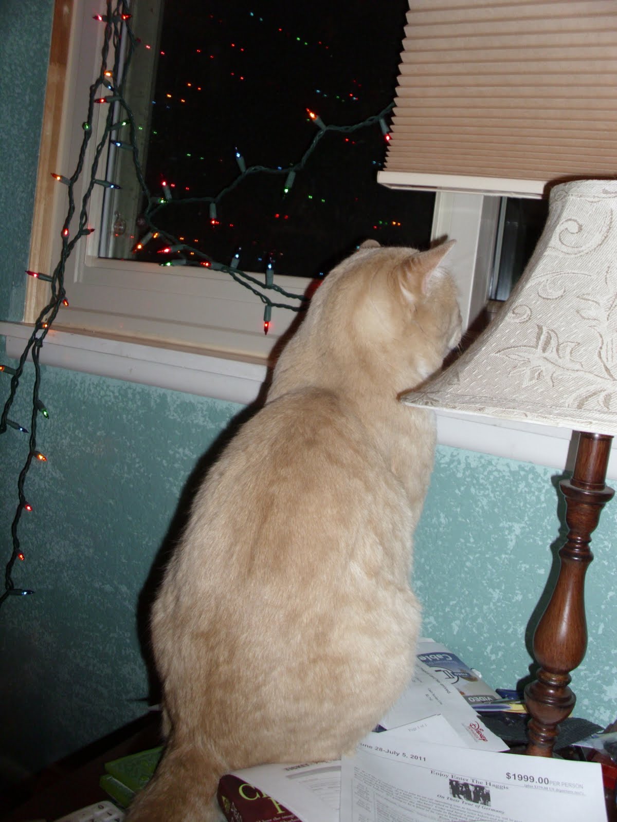 On Christmas night, they all shared a Christmas dinner. Mom's other cat Francis had no problems with her cat cousin and no doubt was embarrassed by the rude behaviour of the other two.